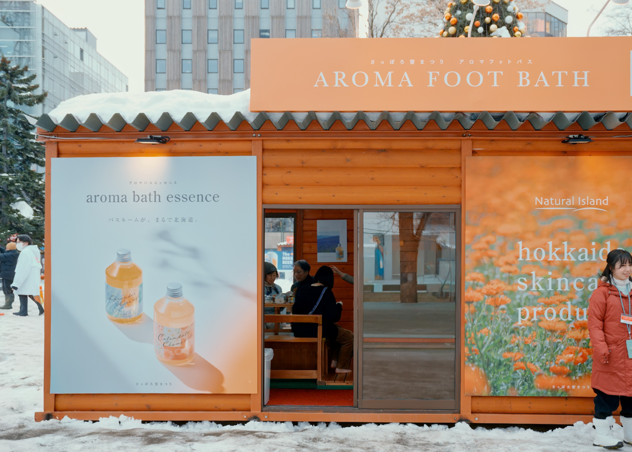 2025年、さっぽろ雪まつり・大通公園1丁目会場にて、ナチュラルアイランド様による「足湯」ブースの空間造作を担当しました。ナチュラルアイランド様とは約10年にわたるお付き合いのなかで、今回空間づくりをお手伝いさせていただく機会をいただきました。大変光栄に感じながら、スタッフ一同、想いを込めて取り組みました。